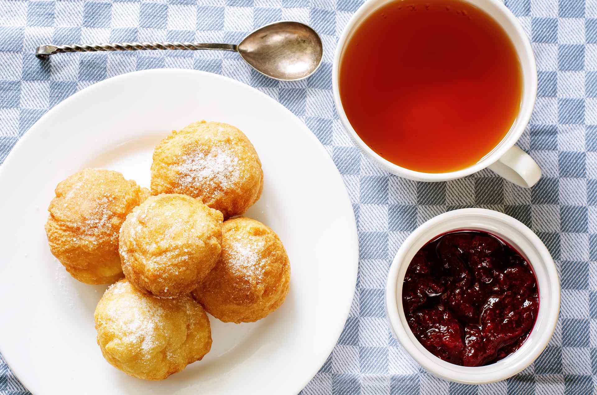 Alle Zutaten für die Küchlein sehr gut verrühren und ca. 15 Minuten quellen lassen. Teig kellenweise in eine heiße Pfanne geben, gut verteilen und Küchlein von beiden Seiten jeweils ca. 1,5 Minuten ausbacken.