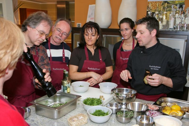 In den individuell auf Ihre Wünsche abgestimmten Kochkursen von Kochkultour steht das gemeinsame Kochen und Genießen im Mittelpunkt. Damit das unter Anleitung von Kai Mehler und seinem Team zubereitete Menü zu einem unvergesslichen Geschmackserlebnis wird, ist jeder Teilnehmer auf die Mitarbeit der Anderen angewiesen. Kreativität und Teamgeist sind dabei die Zutaten, die ein Wir-Gefühl entstehen lassen und den Zusammenhalt in der Gruppe festigen.