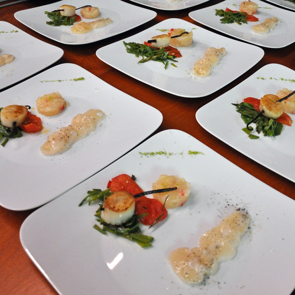 Mit diesem Rezept der Kochschule COOKST DU! aus Eppelheim bei Heidelberg können Kochbegeisterte eine Vorspeise auf ganz hohem Niveau auf den Tisch zaubern. Jakobsmuscheln mit Tartar, gebratener Vanillespieß und Carpaccio an Vanilleschaum mit getrockneten Tomaten und Zuckerschoten – das klingt nach: unbedingt essen wollen …